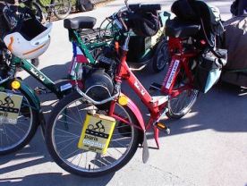 avec pour assistance le contenu des remorques et les populations locales. Le but du voyage est de se rendre à Bagdad pour participer à la contestation de lembargo mis en place après la guerre du Golfe qui maintient l'Irak et sa population dans un état de pauvreté et de développement très réduit. Des initiatives multiples ont été mises en uvre pour combattre cet état de fait. Il s'agit là d'une action supplémentaire pour que le problème soit évoqué en plus haut lieu et que l'information circule au sein de l'opinion publique. La trajet est réalisé en Solex pour accentuer le fait que l'Irak est bien dans la même dimension que nous, que ce pays est accessible et proche de l'Europe. Les trois hommes à qui est confiée cette lourde tâche sont en parfaite synergie avec leur moyen de locomotion. Ils ont acquis une grande expérience dans le domaine du Solex au cours de ces dernières années. De juillet à novembre 2000, ils ont réalisé le périple Paris - Pékin - Nanchang en Solex sur une distance de 15 000 km. Leur mentaux et leur corps sont préparés à affronter cette épreuve. (en savoir plus...) |
