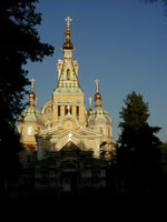 Je prends quand même le temps de visiter le parc Panfilov, où se trouve l'un des plus hauts bâtiments en bois au monde (56 mètres). Il s'agit de la magnifique cathédrale Zenkov qui fut monté en 1904 sans un seul clou. La décoration extérieure est assez impressionnante avec tous ces motifs et ces couleurs variées. De retour à l'appartement, je suis invité à passer la soirée chez le propriétaire. Les enfants étudient le français et l'anglais. Les conversations seront intéressantes et la soirée très chaleureuse. J'ai le droit à petit concert de piano avec toute la panoplie des auteurs les plus connus. Encouragez-le, parlez-lui directement: solex@clamart.net