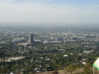 J'arpente longuement les rues d'Almaty, de haut en bas et de long en large. La ville est bien plus petite que lors de mon arrivée il y a trois jours. Les voies piétonnes y sont nombreuses et les rues sont à l'ombre de grands chênes. Les promenades dans les parcs Panfilov et Gorki sont apaisantes et relaxantes. On retrouve quand même un peu le passé soviétique avec quelques bâtiments imposants et mastoques, mais l'ensemble reste cohérent et en harmonie. Il y a bien sur les centres commerciaux dont j'avais oublié l'existence et de nombreux restaurants et terrasses de cafés. Je découvre aussi deux musées. Le musée central est intéressant sur la partie historique du Kazakhstan avec ces multiples envahisseurs au cours du temps. Il l'est moins lorsqu'il met en vitrine toute les "bonnes actions" de l'actuel président. Le musée des instruments de musique est étonnant. Il présente principalement l'instrument national appelé dombira, une sorte de luth à long manche. Le plus remarqué est le guide avec son anglais relatif et le concert qu'il donne aux visiteurs. Je devrais dire au visiteur, parce que j'étais le seul à ce moment là. Je me suis permis de faire un petit enregistrement de ses quelques interprétations de musiques et chansons traditionnelles. Une ballade en montagne me donne un aperçu de ce que la suite du périple nous réserve. J'y découvre l'immense patinoire de Medeo en plein air (la plus grande au monde mais fermée à cette époque). A 2000 mètres, l'air est pur et les sommets enneigés semblent plus accessibles. A la vue des remontées mécaniques, l'envie de faire du ski me prend. Le week-end est passé vite, je ne vais pas me plaindre, je ne bosse pas lundi... Encouragez-le, parlez-lui directement: solex@clamart.net