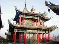 Puisqu'il n'est pas trop tard, nous nous rendons au temple de Gao pour une petite visite touristique. Il s'agit d'un temple à vocation oecuménique fréquenté par des bouddhistes, des confucianistes et des taoïstes. L'architecture de l'édifice est surprenante et forme un labyrinthe de balcons, d'escaliers et de salles de culte avec des divinités des différentes religions. Le temple est toujours en activité et des moines circulent dans tous les sens. La découverte du temple avec ces peintures colorées est fort intéressante. Nous faisons ensuite nos différentes courses en pneu et alimentaire avant d'aller se restaurer. A la table d'à côté, quatre personnes qui ont fini de manger (mais pas de boire), nous offre un petit verre d'alcool de fort. Puis un second. Nous essayons de communiquer, mais sans langue commune ce n'est pas évident. Nous finissons de manger pour retrouver avec bonheur un lit bien au chaud. Le temps se dégage, la pleine lune éclaire le ciel sans nuages. Encouragez-le, parlez-lui directement: solex@clamart.net |