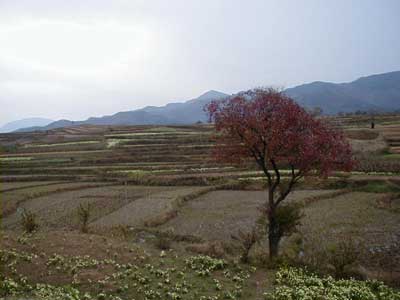 Sinon, tout cela m'offre un paysage de montagne splendide avec une légère bruine rafraîchissante. Les torrents dévalent les montagnes. J'aperçois au détour d'une vallée, un monastère avec une immense tour ou pagode. Le paysage redevient sauvage, les cultures en terrasse laissent la place aux sapins, il ne manque que la neige. Tout cela est bien beau, j'en profite bien pendant mes quelques pauses mécaniques de la journée, pendant les montées où je marche pour ne rien louper, pendant les descentes où je me repose assis sur ma selle. La nuit vient vite (aussi vite que les autres soir mais on se laisse toujours surprendre). Il n'y a pas de villes sur ma route, et ce serait dommage d'être tranquille (pour une fois) en montagne et de ne pas en profiter. En pleine nuit noire, j'arrive à trouver un chemin qui part à gauche de la route vers l'inconnu. Je ne vois pas grand chose, mais je suis au bord d'un lac, il n'y a pas âme qui vive et cela semble tranquille et moelleux. Je pose donc mon campement dans cet endroit que je découvrirais demain. Je distingue juste la ligne de crête des montagnes basses d'en face. Encouragez-le, parlez-lui directement: solex@clamart.net |