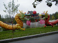19 septembre 2000 Encore dans le bus, mais vers Urumqui Le bus arrive à 5h30 à Panfilov, il faut encore prendre un taxi pour arriver à Korgos (30 kms), la frontière. Nous y arrivons, il ne fait pas encore jour et la frontière ouvre à 9 heures. Nous essayons de dormir un peu avant de prendre un petit déjeuner. Nous rencontrons un petit vieux qui se rend aussi en Chine, il parle anglais mais il a un peu oublié. A la frontière, du côté russe, tout le monde se souvient de nous. Nous récupérons nos Solex qui dormaient au frais dans la cave. Puisque les douaniers nous connaissent, nous passons devant tout le monde. Les autres particuliers qui se rendent en Chine nous reconnaissent et s'attroupent autour de nous. Nous arrivons du côté chinois, là aussi, nous sommes attendus. Avant de descendre du bus qui traverse le no man's land, ils contrôlent nos passeports. Un interprète en anglais se trouve sur place. Il nous explique à nouveau, que nous devons faire enregistrer nos véhicules à Urumqui avant de les utiliser sur le territoire de la république populaire de Chine. Ils veulent aussi voir nos cartes de crédit pour s'assurer que nous disposons de ressources suffisantes. Tout semble en règle, nous avons le tampon sur le passeport. Au contrôle de douane, le gars fait passer ce qu'il peut aux rayons X. Pour le reste, il regarde vaguement. Ce qui l'intéresse, c'est de monter sur le Solex et de pédaler dans le hall. A la sortie, il y a un monde fou qui nous attend. Au début, c'est pour changer de l'argent, puis c'est pour voir nos drôles de machines. A dix mètres du poste de douane, il y des dizaines de boutiques et étales qui vendent tout et n'importe quoi. Nous somme un peu crevé, un petit repas posé est le bien venu.