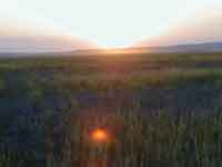 20 août 2000 - A 182 kms de Aktobe 49°N 10' 47" 56°E 32' 22" Je me lève presque avec le soleil (un peu plus tard quand même) dans la fabuleuse grandeur de la steppe. Elle occupera d'ailleurs, mon champ de vision du matin jusqu'au soir. Il y aura bien sur quelques conglomérats d'habitations et toujours la voie ferrée à moins d'un kilomètre de la route. Des trains, de marchandises surtout, n'arrêtent pas d'y passer, la voie doit être en bon état, elle. Pour ce qui est de la route, il vaut mieux parfois passer sur une piste crée par le passage des usagers sur les bas-côtés. Même en Solex, je suis obligé de ralentir.