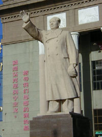 Je passe l'après-midi à errer et me perdre dans les rues de Pékin. Il y a de la vie partout et l'occasion de s'arrêter à chaque coin de rue. J'arrive tout de même à la fameuse place Tian'anmen. C'est grand, il y a de l'animation entre les touristes, les vendeurs en tous genres et quelques personnes âgées avec de majestueux cerfs-volants. La place s'ouvre sur l'entrée de la cité interdite. Le portrait de Mao, accroché en haut de la grande porte à l'architecture traditionnelle, pollue le paysage, il n'est pas vraiment d'époque.