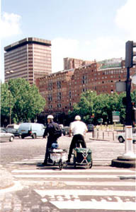 Le départ, porte de pantin d'Eric et de Bertrand, son premier équipier qui le suit jusqu'a Prague. Le début de l'aventure... L'épopée, jour après jour: 1er Juillet 2000: Le départ de Paris, sous la Tour Eiffel 2 juillet 2000: La première vraie journée. 3 juillet 200: La Moselle et les premières pluies. 4 juillet 2000: Le passage en Allemagne. 5 juillet 2000: Jusqu'au camping naturiste allemand... 6 juillet 2000: Journée bricolage, du Solex au réchaud. 7 juillet 2000: On se rapproche de la République tchèque, il pleut toujours. 8 juillet 2000: Rentrée en République Tchèque, les Solex tournent bien, le relais Bertrand-Matthieu approche. Le moral est au beau fixe. 9 juillet 2000: Arrivée à Prague, la capitale et première grosse étape. Bilan, relais, bières et resauration locale. 10 juillet 2000: Repos, réparation et école de conduite. 11 juillet 2000: C'est parti avec un nouvel équipier. Les mails d'encouragements pleuvent, c'est agréable, continuez... 12 juillet 2000: Accueil plein de chaleur, rencontres, et toujours pluie... 13 juillet 2000: Ca roule pas trop aujourd'hui, bonne bouffe oblige. 14 juillet 2000: "Nous sommes à Odry dans une petite ville perdue dans la campagne. Cet hôtel nous semble surréaliste, décoré années soixantes, jamais rénové, vide, avec quelques ivrognes au bar, avec des grands couloirs où les tapis sont de travers, des chambres avec des plafonds de plus de trois mètres. C'est un peu glauque comme ambiance, le temps s'est arrêté sur ce bâtiment et les gens qui s'y trouvent." 15 juillet 2000: Il pleut toujours, les Solex souffrent, mais on arrive en Pologne. 16 juillet 2000: C'est simple: soit la pluie stoppe, soit on fait la grêve! 17 juillet 2000: Grosse escale technique. Cours avancés de mécanique pour Matthieu. 18 juillet 2000: Emouvante visite d'Auschwitz. 19 juillet 2000: Les routes sont difficiles, les solex en prennent un coup. 20 juillet 2000: Réparation de la remorque, arrêt forcé mais agréable à Cracovie. 21 juillet 2000: Cracovie est une ville sympathique, on y reste. 22 juillet 2000: Encore à Cracovie 23 juillet 2000: Nouveau départ, sans équipier cette-fois... Eric est seul. 24 juillet 2000: Les gens sont sympathiques, le solex peine, mais c'est bon. 25 juillet 2000: Camping sympathique, jeunes sympathiques... 26 juillet 2000: Pas de nouvelles d'Eric, mais un petit texte de Matthieu. Retournez aussi voir les derniers jours, j'ai rajouté des photos. 27 juillet 2000 : Eric devient conferencier ... 28 juillet 2000 : Les routes en rouge sur la carte 29 juillet 2000 : Pas de réseau Gsm, mais Eric avance et nous raconte son récit qui l'amène vers l'Ukraine. 30 juillet 2000 : Kiev (enfin presque ...) et toujours pas de réseau. 31 juillet 2000 : Enfin à Kiev ... 01 aout 2000 : Kiev (bis), Celui qui cherchait des pneus .... 02 aout 2000 : Kiev (ter), Réparations et détente au programme 03 aout 2000 : C'est reparti sur la route "On the road again ..." 04 aout 2000 : Une journée sans problème mécanique. "Quelques photos sont apparues sur les jours à Kiev." 05 aout 2000 : Période d'entrainement au parcours solex en vallée et à la nourriture chinoise. 06 aout 2000 : Kupians'k - La culture française est bien présente içi, merci Alain Delon. 07 aout 2000 : On s'enfonce vers l'Est de plus en plus. Controles de police et difficultés de langage. 08 aout 2000 : Ca y est! une frontière de plus passée. Bienvenue en Russie! 09 aout 2000 : Mogamed et sa famille, sympas... 10 aout 2000 : L'objectif de la journée est d'arriver à Volgograd. Il faudra donc beaucoup rouler. Je parcourrai sur ces routes plates, droites et désertes, environ 250 kms. C'est un record que je ne tenterais pas de battre, ce n'est pas super intéressant et ca fait mal aux fesses.. 11 aout 2000 : Visite de Volgograd, recherche de cartes routières. 12 aout 2000 : Serait est-ce déjà la steppe? 13 aout 2000 : Vent, steppe, contrôle de police... C'est donc ca l'Asie! 14 aout 2000 : Astrakhan. 15 aout 2000 : A mon réveil, je regarde par la fenêtre qui donne sur la cour intérieure, et malheur, je ne vois plus mon Solex. 16 aout 2000 : Après le passage d'un autre bac, j'arrive au Kazakhstan. A priori, je suis un cas particulier. Ils n'ont pas vraiment l'habitude de voir des touristes. 17 aout 2000 : A Astrakhan, plusieurs types m'avaient dit qu'il n'y avait pas d'asphalte. Le paysage est constitué de steppe à perte de vue et de vent. 18 aout 2000 : J'arrive à Makat où je souhaite faire le plein d'essence. C'est une petite ville qui vit de l'extraction du pétrole. Le paradoxe, c'est qu'il n'y a momentanément pas d'électricité pour faire fonctionner les pompes à essence. . 19 aout 2000 : Un type me propose de m'emmener (mon Solex et moi) jusqu'à la prochaine grosse ville avec son camion. Il ne comprend pas pourquoi je refuse, moi je comprendrais plus tard ! 20 aout 2000 : Le long de la route, une famille en voiture m'arrête. Nous discutons, nous buvons un petit verre de Vodka sur le capot de la voiture. 21 aout 2000 : Il se remet à pleuvoir, juste de quoi mouiller la route, puis le vent se lève, le vent de face. J'ai l'impression que le sort s'acharne sur moi pour que je n'arrive pas à destination ce soir. 22 aout 2000 : De retour à l'hôtel, j'envoie mes comptes rendus de retard et lis avec plaisir mes mails. Désolé si la mise à jour n'est pas journalière, mais je n'avance pas assez vite pour avoir une couverture gsm quotidienne. J'ai bien peur qu'il y ait un grand vide pour les prochains jours, je fais ce que je peux.... 23 aout 2000 : Si l'on regarde une carte, je suis monté au Nord est pour atteindre Aktobe et maintenant, je redescends vers le sud est. C'est un peu débile à première vue, mais je préfère prendre des routes soit disant en bon état où il n'y a pas grand monde, que des routes qui ne sont que des chemins fréquentés par vraiment personne. 24 aout 2000 : Deux types louches m'arrêtent sur la 
