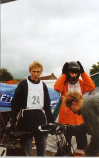 Un témoignage de Manu, participant aux 24 heures Solex...Dans un vrombissement du tonnerre et dans la chaleur humide de la plaine de Nouzier, dans la creuse, les pilotes, à l'oeil vif, font chauffer leurs machines sur une piste de >= 4 Kms, écrasant au passage quelques paysans qui n'ont pas eu le temps malgré de bons réflexes de se mettre à l 'abri. Glissant sur un crapaud, le pilote en tête de la course se viande dans les barbelés, ce qui ne l'arrête pas, son taux d'adrénaline empêchant la douleur de se répandre dans son corps meurtri. Le cinquième, lui, voit son pneu avant éclater à cause d'un demi guidon de solex perdu lors des tours précédents (Véridique) et sa tête s'encastre à la perfection sur le mur de la discomobile ou il fait figure de trophée de chasse pecorique. |